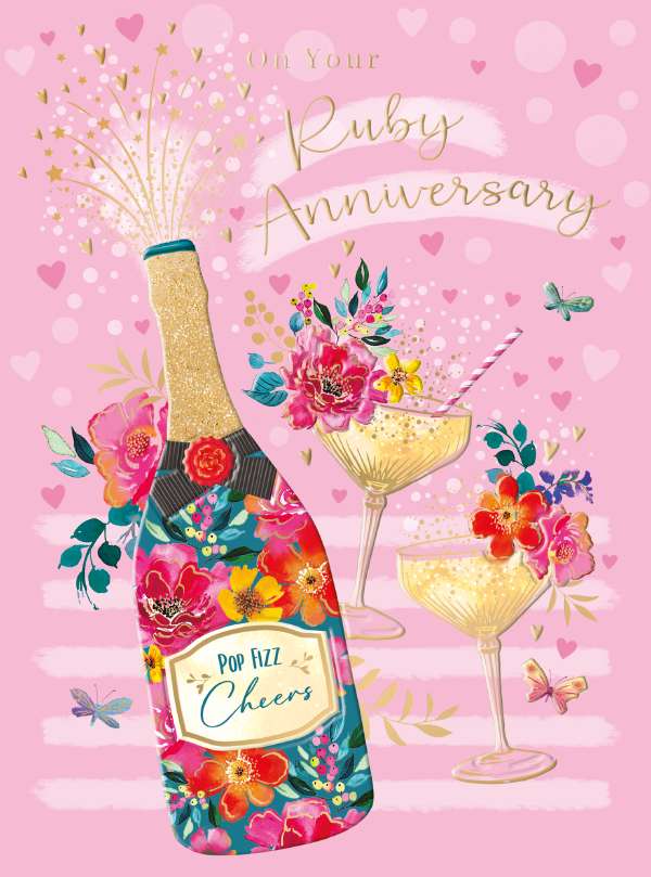 RUBY WEDDING ANNIVERSARY CARD - POP FIZZ CHEERS