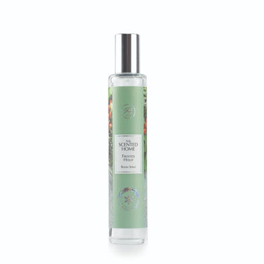 Frosted Holly Room Spray features crisp rose and hints of frosted holly berries resting on a base of soft moss and powdery musk, capturing a frozen garden glittering beneath a sheen of winter snow.