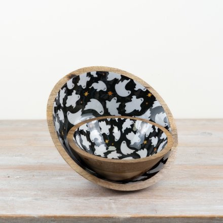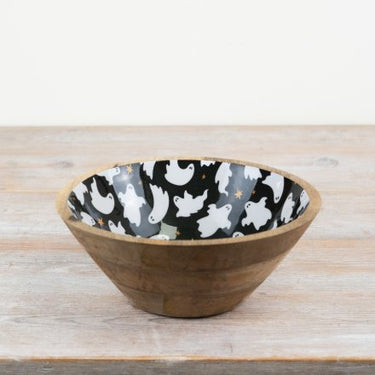 This stylish bowl is made from high-quality wood and enamel, featuring a spooky yet chic design of black and white ghosts. Perfect for serving up snacks or as a decorative tray, this Ghost Bowl will add a touch of eerie elegance to any gathering. Size: 23cm x 23cm