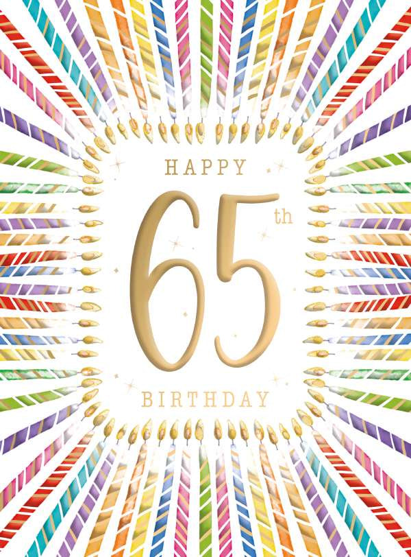 65th Birthday Card - Colourful Candles