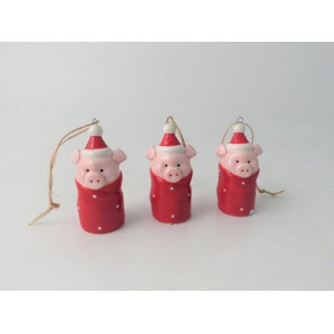 A super cute hanging decoration, featuring a pig wrapped in a festive red blanket with white polka dot decal. Sure to be a sweet addition to any home. Size 7cm