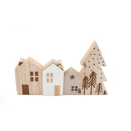 Add a touch of nature to your festive decorations with this wooden house deco. The intricate designs of houses and trees make them a delightful accent piece for your home during the holiday season. Size: 20.5cm