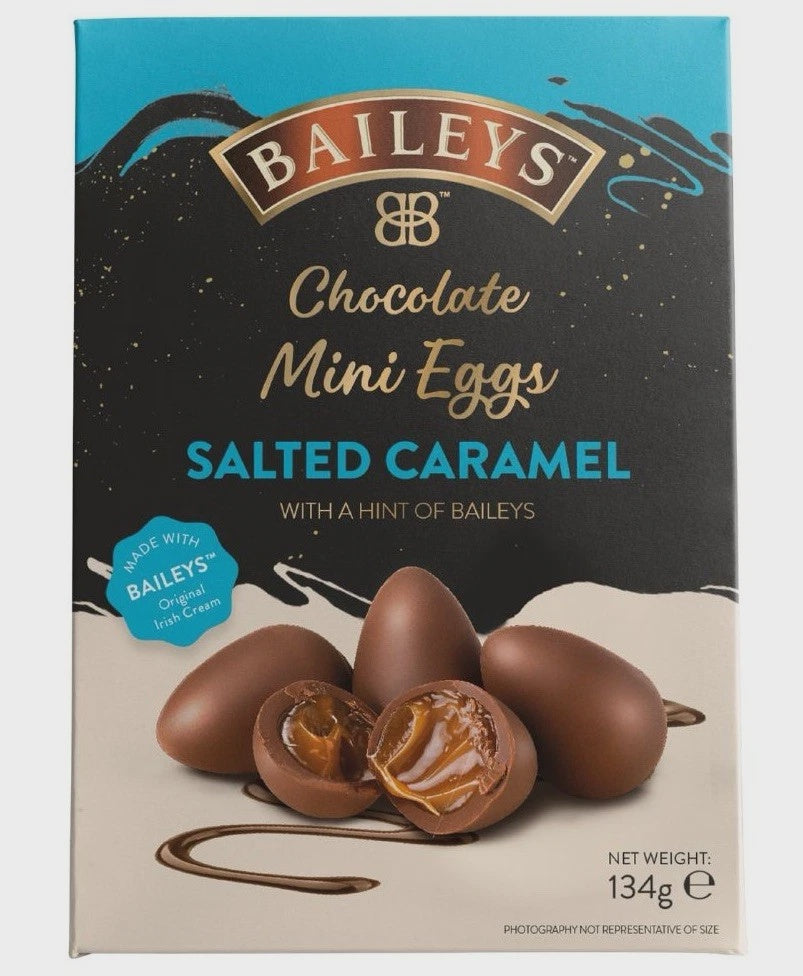 Milk chocolate eggs with a salted caramel centre and a hint of Baileys