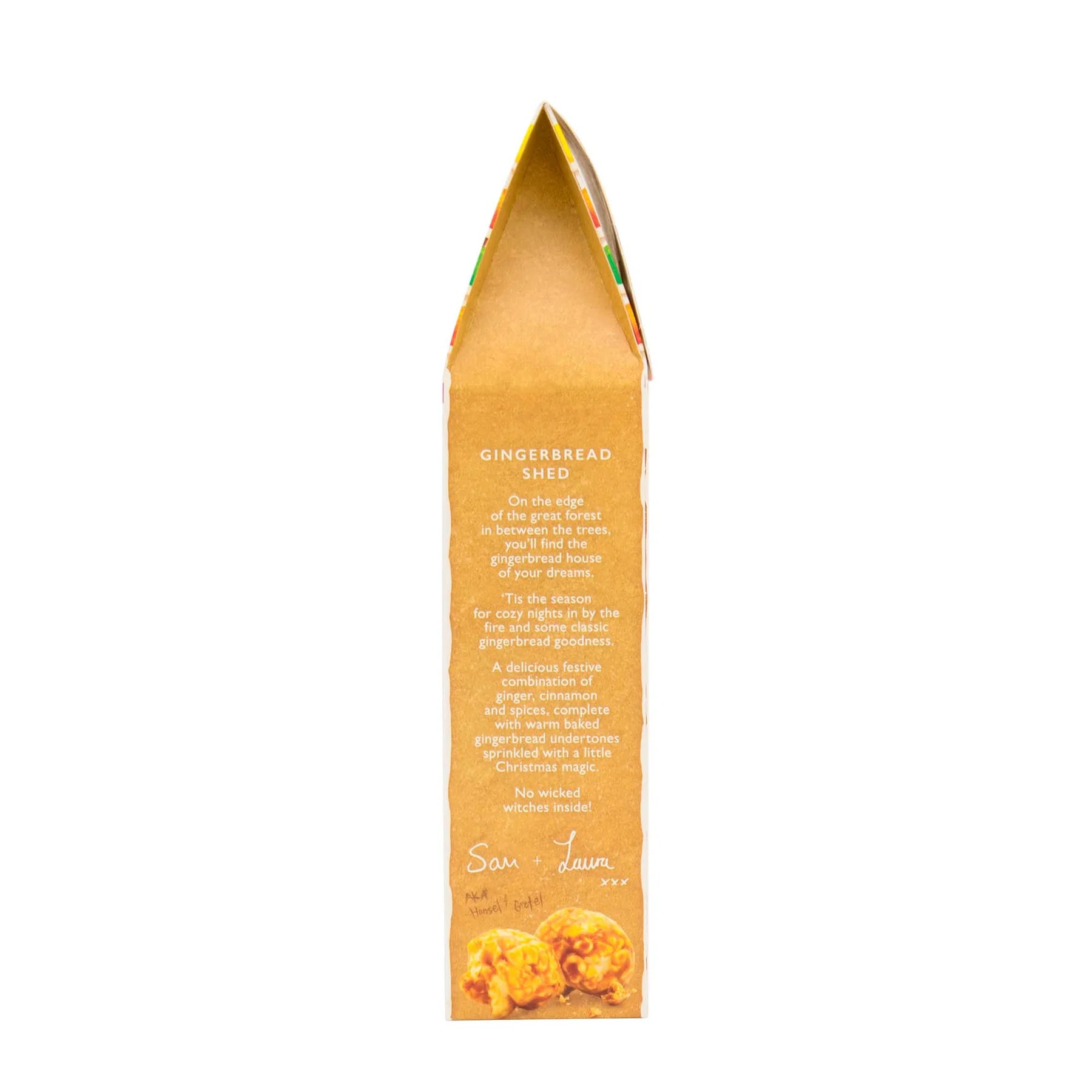 On the edge of the great forest in between the trees, you’ll find the gingerbread house (aka shed) of your dreams. This shed is filled with caramel popcorn infused with a deliciously festive combination of ginger and spices. Complete with warm baked gingerbread undertones and sprinkled with a little Christmas magic, it’s the treat of the season!