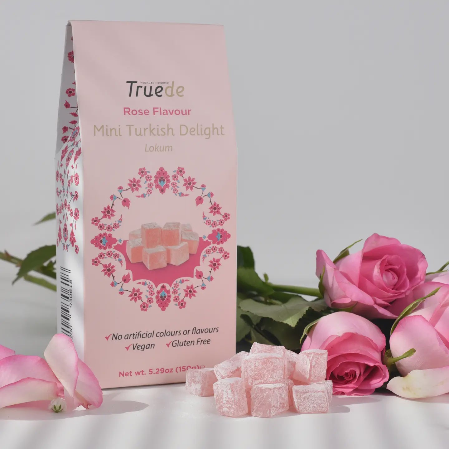 Truede's Mini Delights are now conveniently packaged in a grab-and-go style, ensuring a delightful snacking experience. Featuring delicate rose flavour and still meticulously handcrafted by artisans in Istanbul, these bite-sized pieces are crafted to delight your senses.