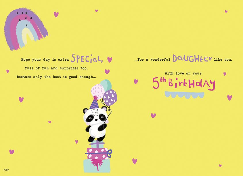 Verse: For a special daughter 5 today Hope your day is extra special, full of fun and surprises too, because only the best is good enough... for a wonderful daughter like you. With love on your 5th birthday.