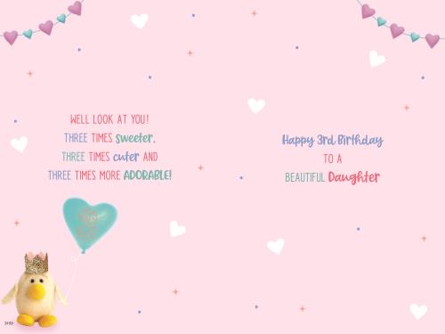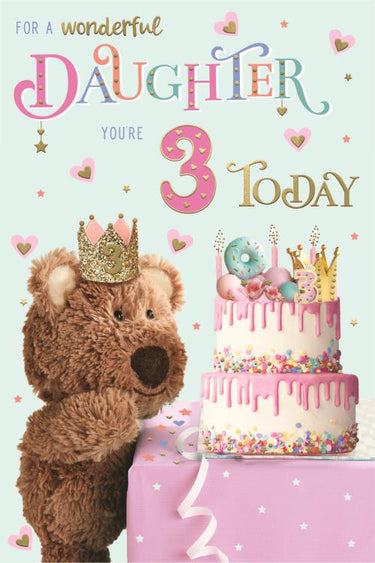 DAUGHTER 3RD BIRTHDAY CARD - BARLEY BEAR