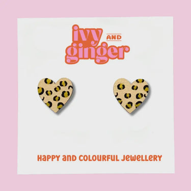 Hand painted cream and gold leopard print heart shaped wooden earrings, the perfect statement piece to add a touch of fun and playfulness to your accessories collection. Measuring 15mm, these bright and colourful earrings are meticulously hand-painted to create a unique leopard print design using FSC certified wood. Crafted with surgical steel findings, these earrings are perfect for sensitive ears and ensure all-day comfort. Ideal as a gift for her, these fun, playful accessories are perfect for anyone who loves to showcase their unique style. These vibrant and stylish earrings are the perfect accessory to complete your look, sure to become your go-to for any occasion. Every pair of earrings comes attached to a stylish backing card. These earrings are often used for gifting such as birthdays, best friend gifts, thank you gifts, stocking fillers etc