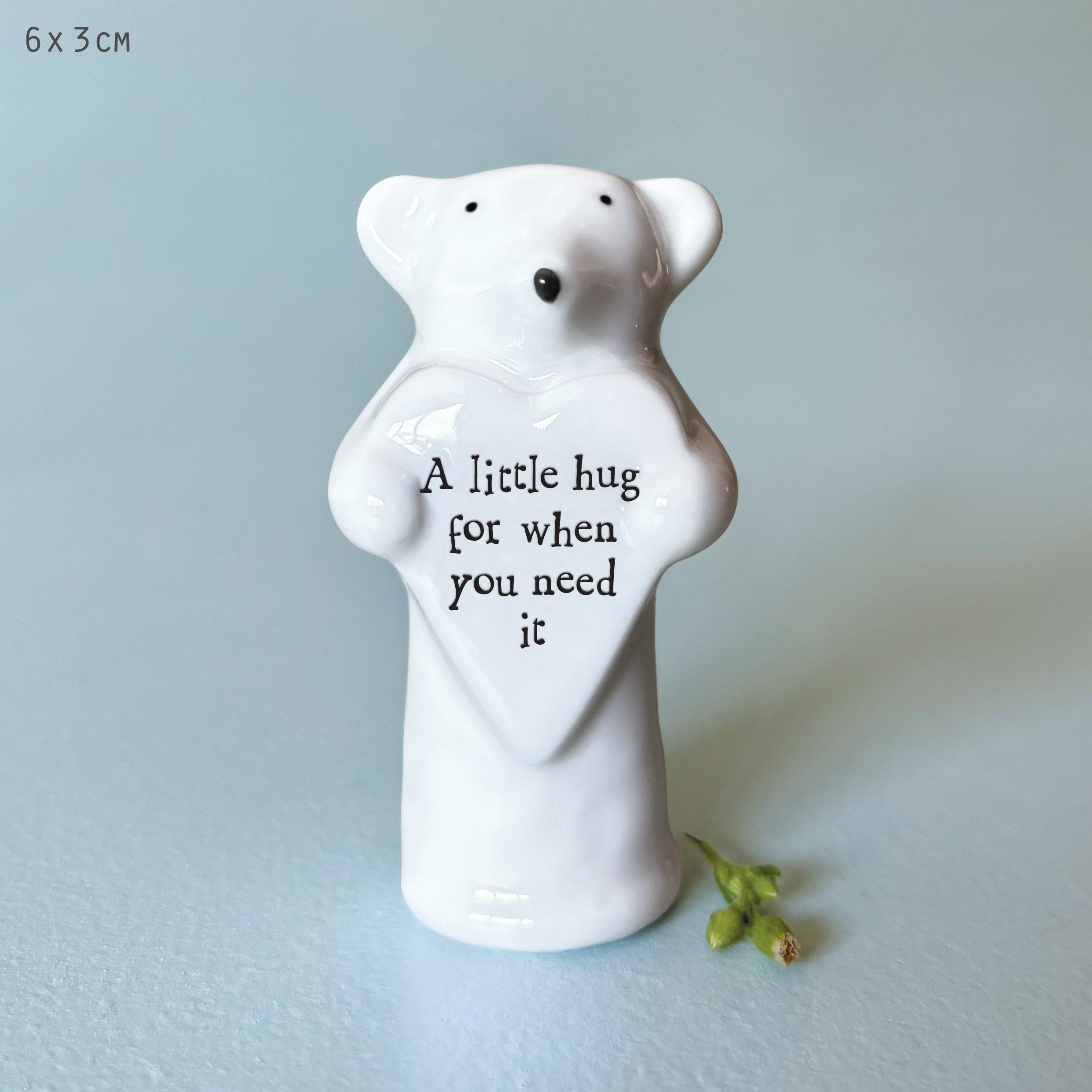 This charming porcelain mouse ornament from East of India is the perfect gift for any mouse or animal lover. The ornament features a three-dimensional mouse holding a heart which has the sentiment, ‘A little hug for when you need it’ etched on it. This heartfelt message is sure to touch their heart, making it a thoughtful keepsake they will treasure for years to come. Don’t miss out on this delightful gift!