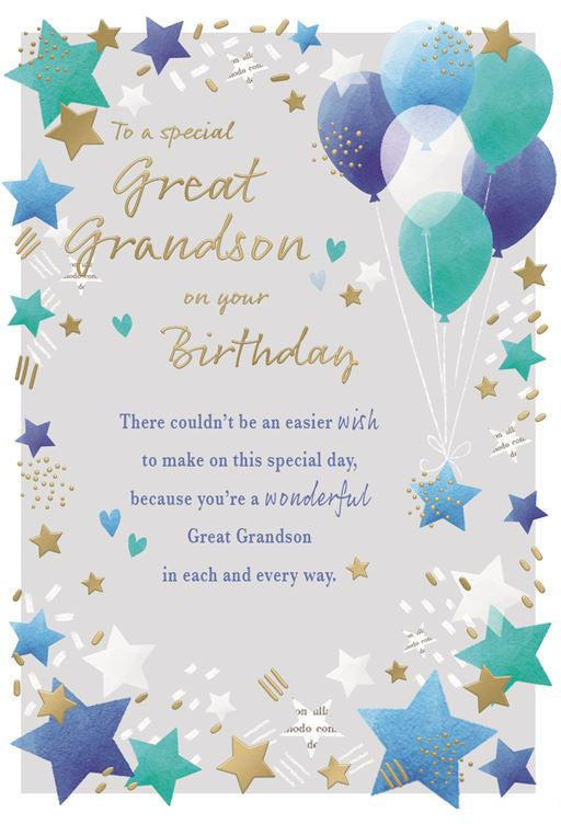 Inside Reads : From the day that you were born, just a tiny baby boy, you brought more love than you'll ever know and filled my life with so much joy. There are so many cherished memories watching you learn and grow, for you are an amazing great grandson who is such a joy to know. Happy Birthday Great Grandson