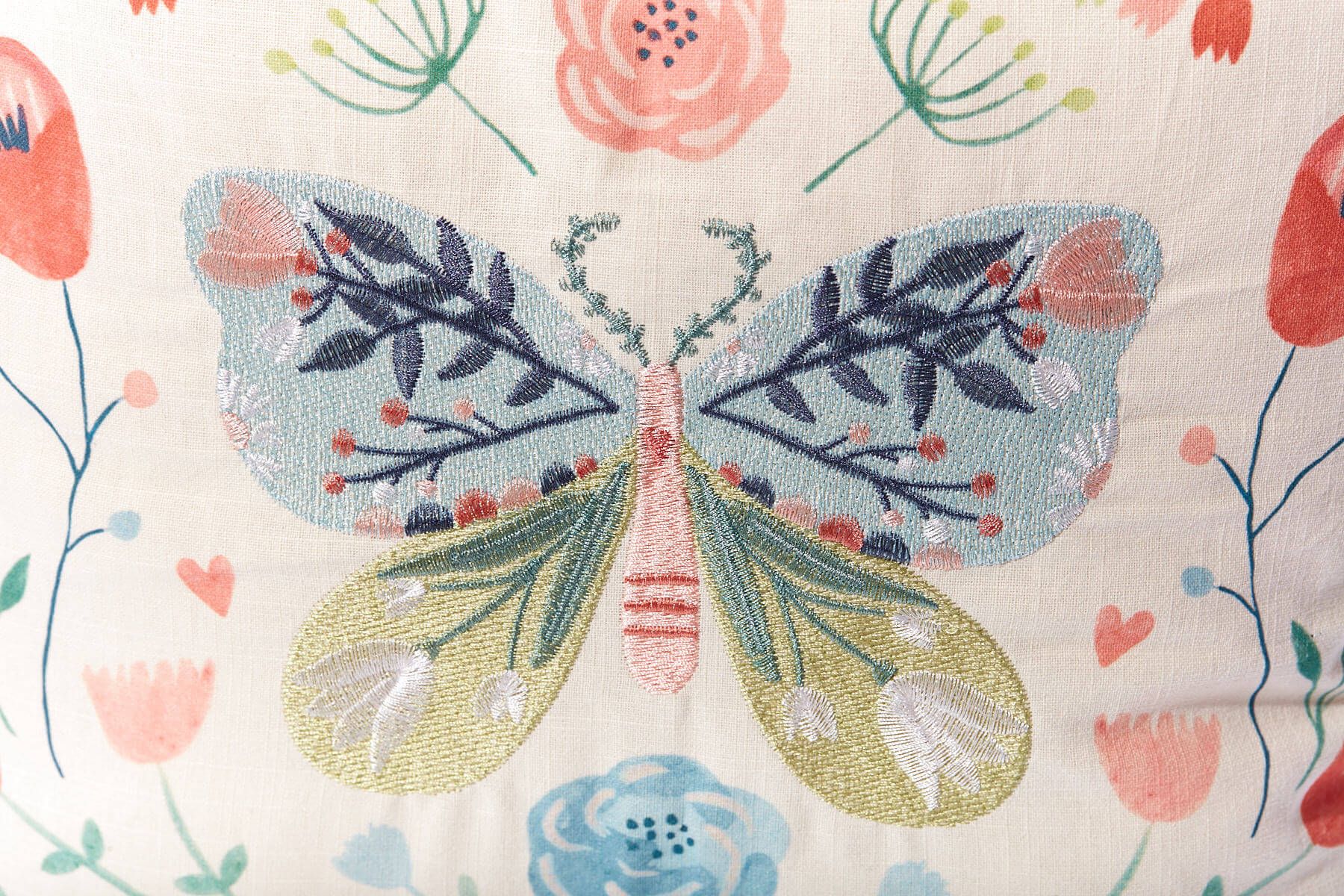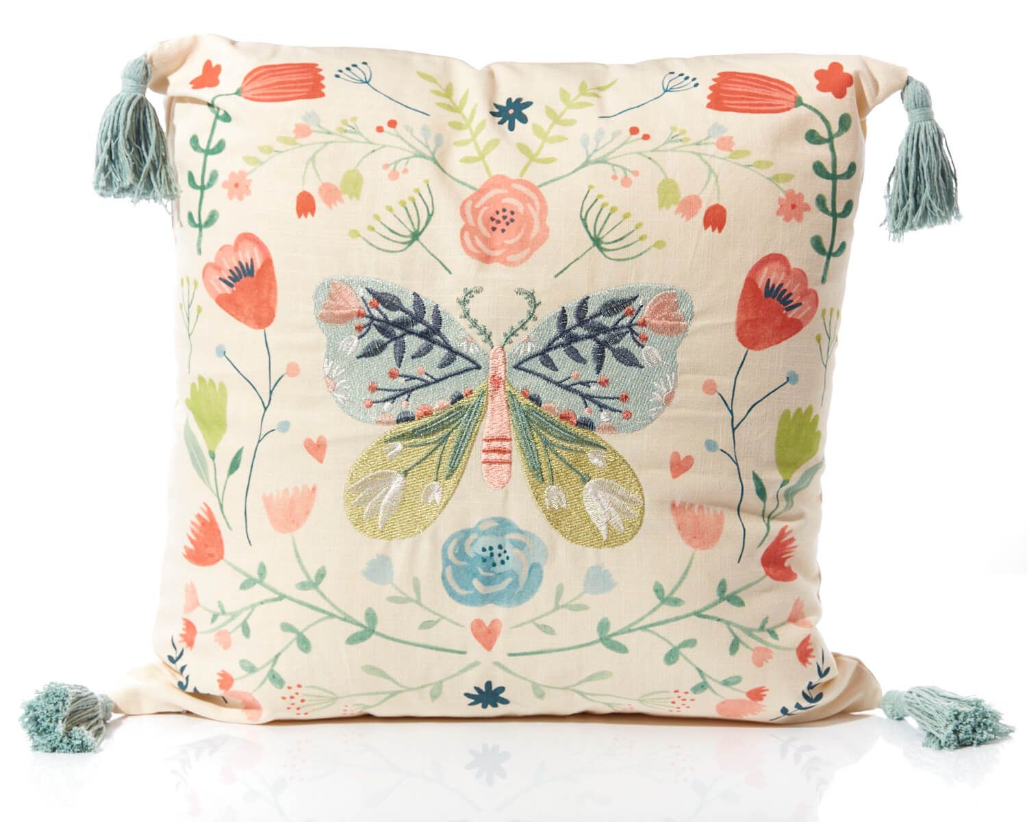 BRIGHT FLORAL BUTTERFLY CUSHION FABRIC WITH EMBROIDERY & TASSELS