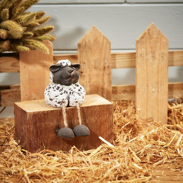 SHEEP SHELF SITTER BLACK & WHITE TEXTURED CERAMIC