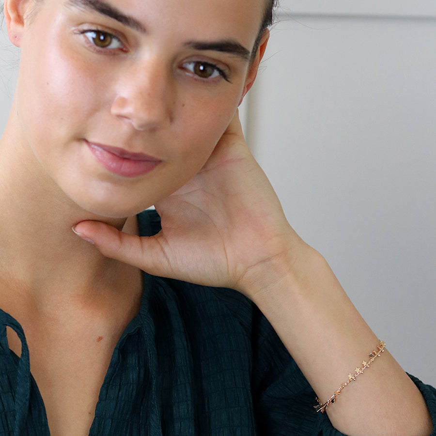 FAUX GOLD MULTI STAR AND TINY BEAD CHAIN BRACELET