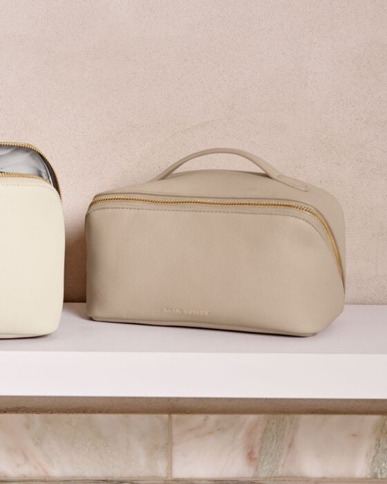 Level up your get-ready routine with our Medium Makeup And Wash Bag in Light Taupe. Its zip-around closure allows effortless access to your belongings, while its wipeable lining means there's no need to worry about spillages. Designed for makeup enthusiasts, this bag lays flat on any surface, revealing centre dividers and pockets for seamless organisation. It's the perfect blend of style and function.