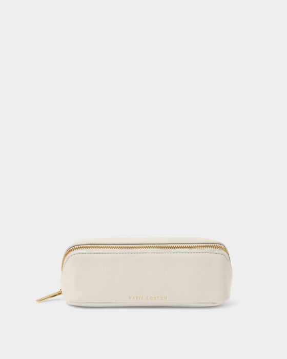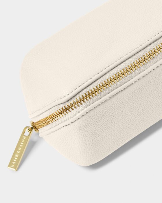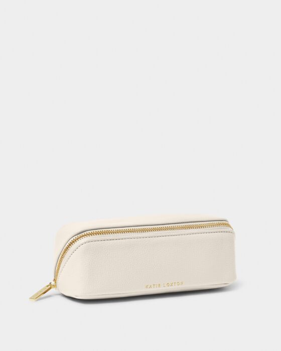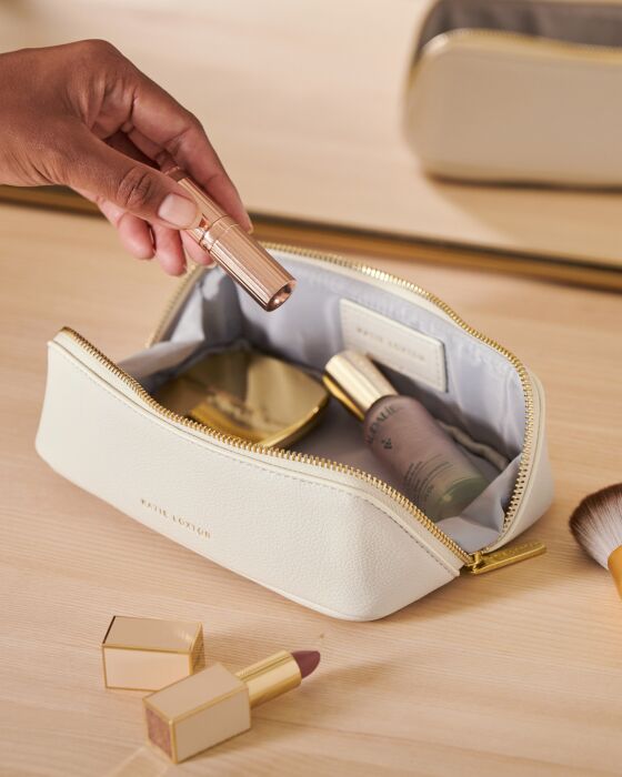 Effortlessly elevate your morning ritual with Katie Loxton's Small Makeup Bag in Off White. Showcasing a zip-around closure for security, and and a spacious interior for optimal organisation, this bag is every beauty enthusiast’s dream. Carefully designed from soft vegan leather and featuring a wipeable lining, it is able to remain looking good as new for years to come. Plus, its innovative design allows it to fully open and lay flat on any surface, providing easy access to cosmetics. This stylish piece is available in small, medium, and large sizes, making a wonderful addition to any dressing table.
