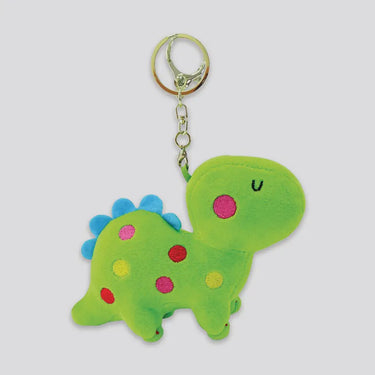 Get ready for cuteness overload! This soft plush dinosaur bag charm is a beautiful and bright character from our range. It has great attention to detail, incorporating different materials and embroidery embellishments, including little green scales on its back. It features a chain with a hook and keyring for easy attachment to backpacks and bags. WARNING: Not suitable for children under 36 months