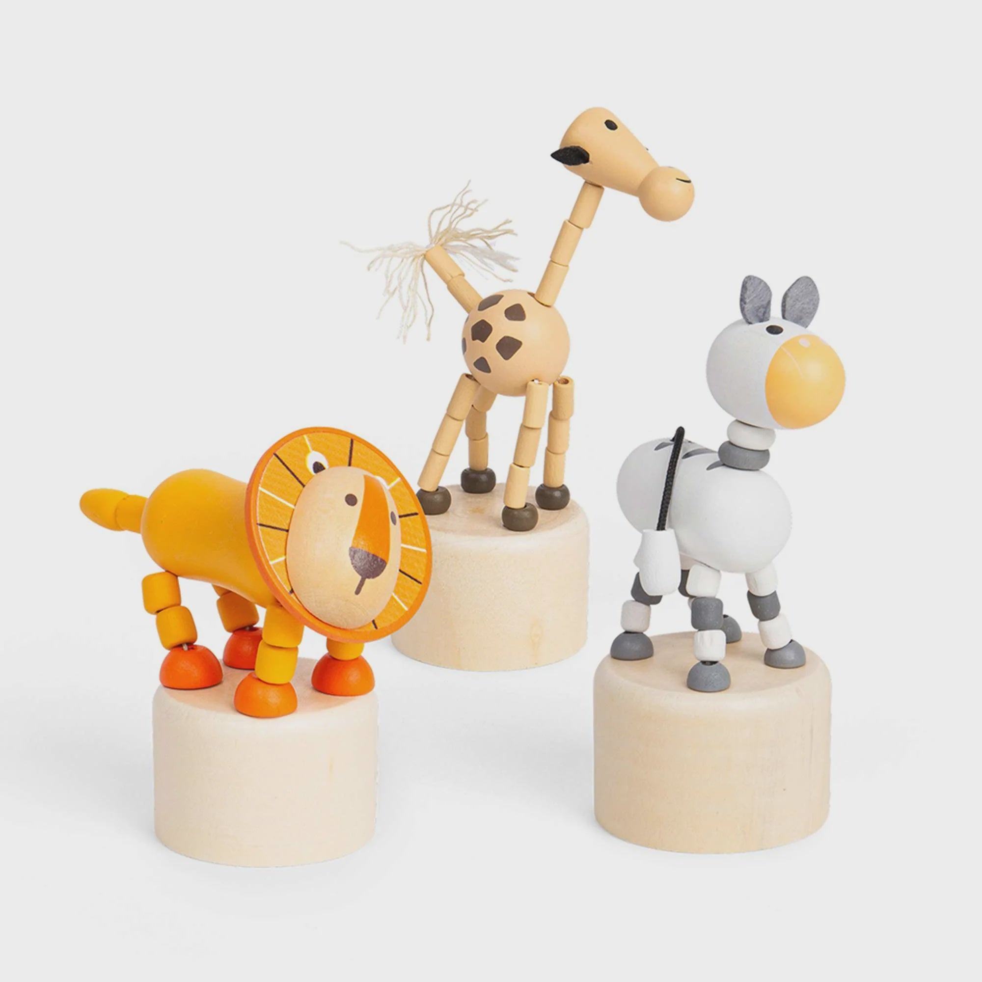 Embark on wild adventures with our enchanting Animal Push Ups. Simply push up the base of these curious creatures to watch them dance!