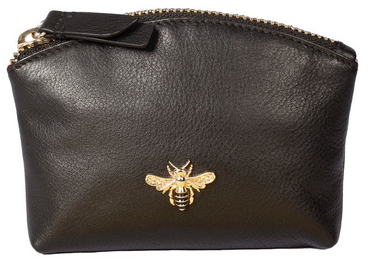 Black Leather Bee Coin Purse