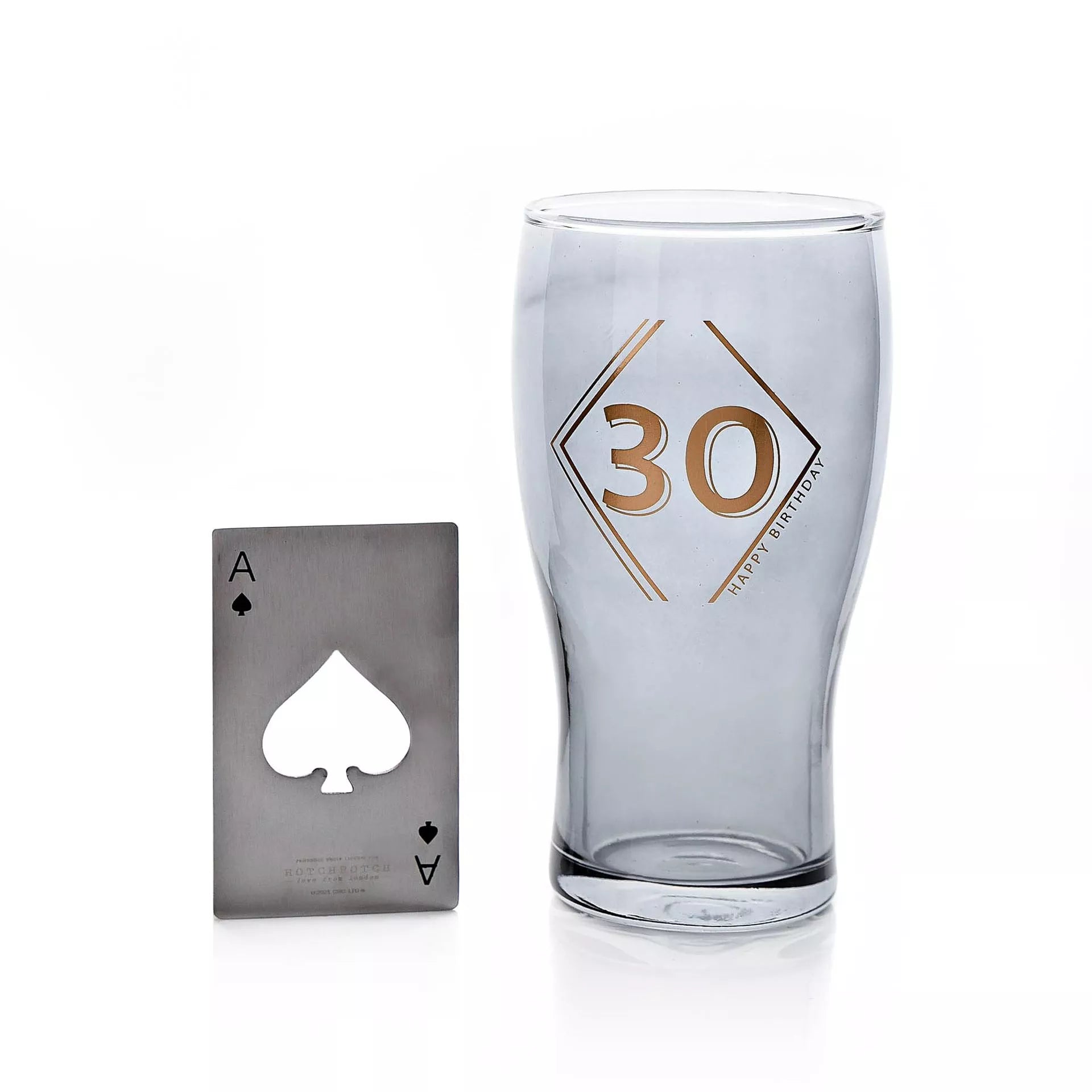 This pint glass would make an excellent gift for anyone turning 30. The modern and geometric style 'Happy Birthday' that features in an on-trend gold-foil perfectly complements the blue tint of the glass, making this a perfect gift option for friends or family hitting the 30 milestone.