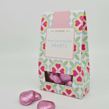 Smooth milk chocolate hearts in pink foil. Perfect gift for Valentines, Mother's Day or Easter