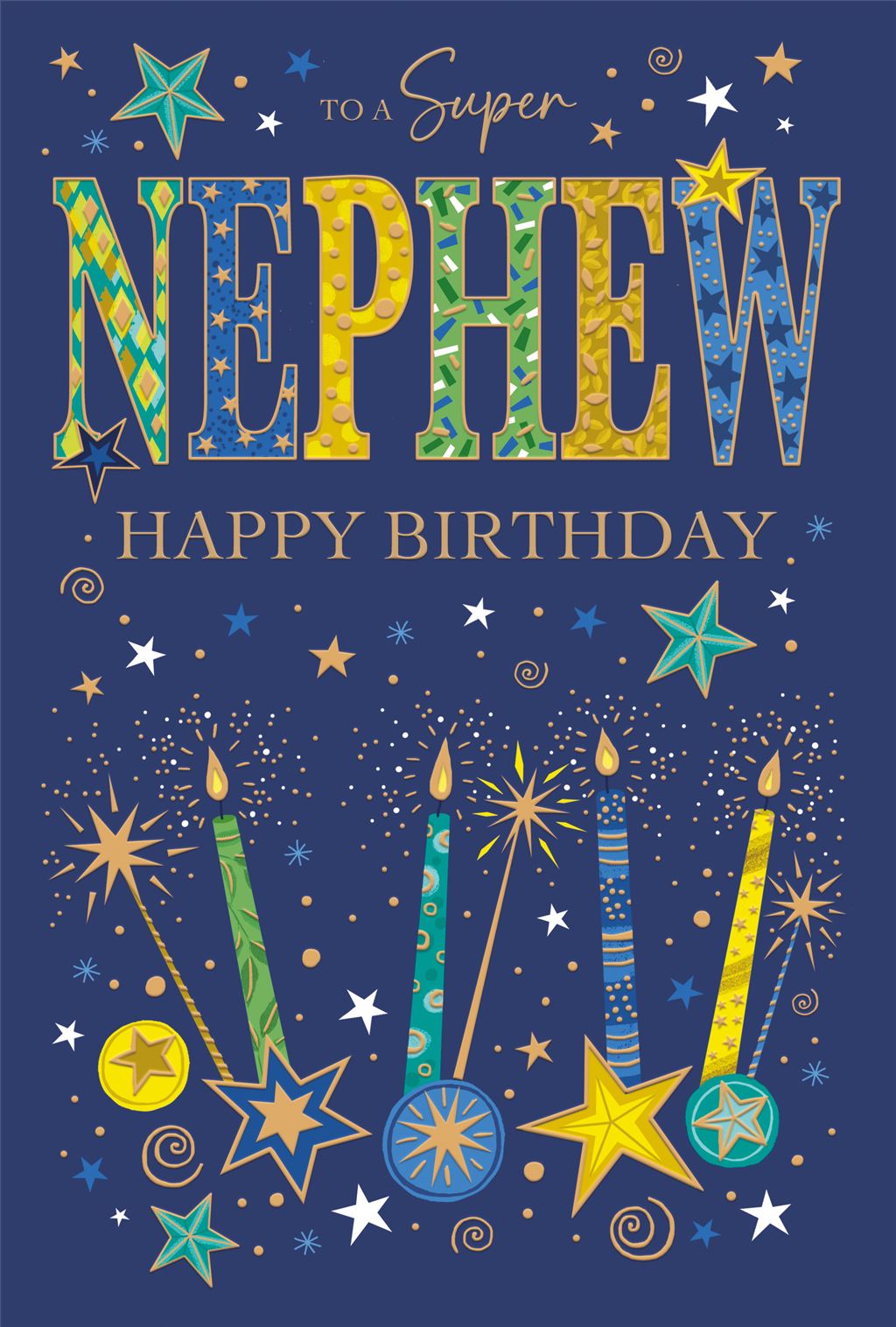 Inside Message Reads: From the start you’ve brought such cheer, a shining star we hold so dear. We’re so proud of all that you’ve become, a Nephew loved by just everyone. Happy Birthday