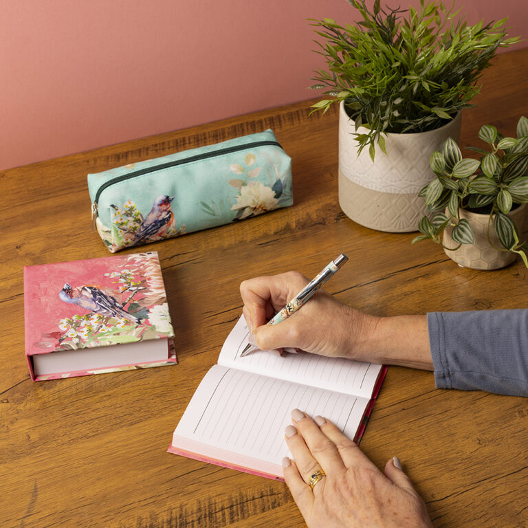 Give yourself a quiet moment with our beautifully designed notebooks perfect for writing, taking notes, journaling, making lists and much much more! Our flexi-bound notebook has 176 sheets of ruled white paper, colour printed on the side edges with an elastic closure.