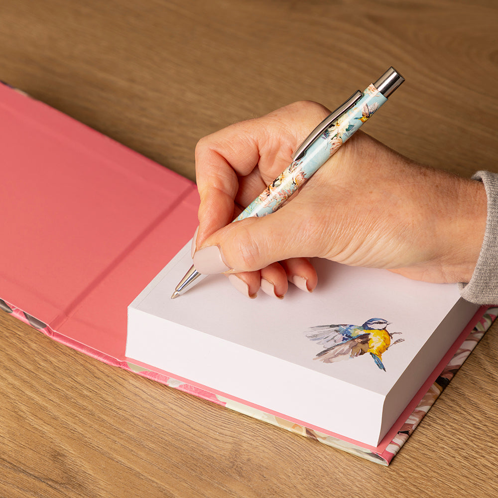 The perfect item for your desk in those “I mustn’t forget that” moments. This hard cover note block has 300 sheets of white paper with accent design. Sheet size 124 x 124mm.