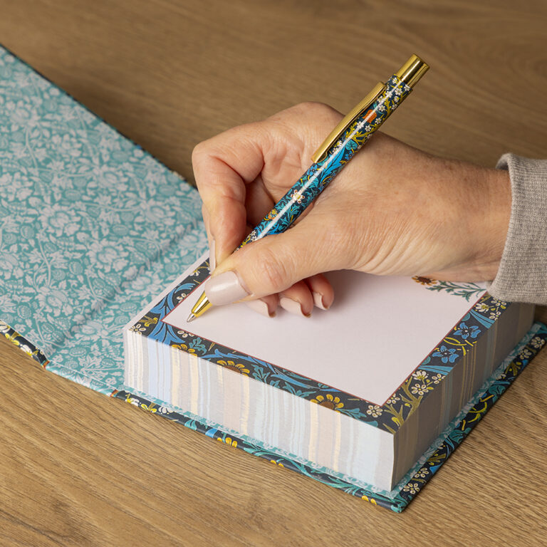 The perfect item for your desk in those “I mustn’t forget that” moments. This hard cover note block has 300 sheets of white paper with accent design. Sheet size 124 x 124mm.