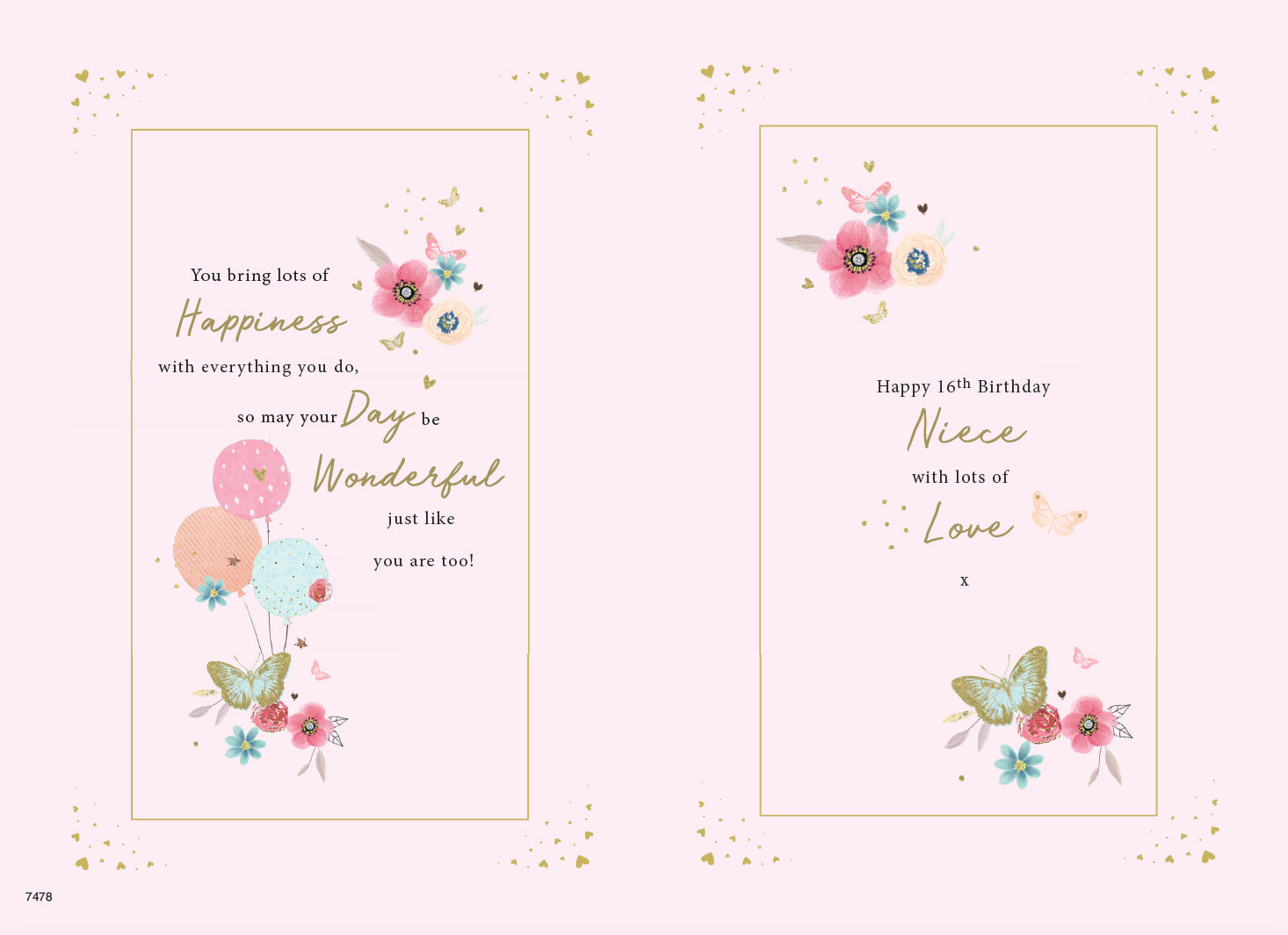 Message inside: 'You bring lots of happiness with everything you do. so may your day be wonderful just like you are too! Happy 16th Birthday Niece with lots of Love x'