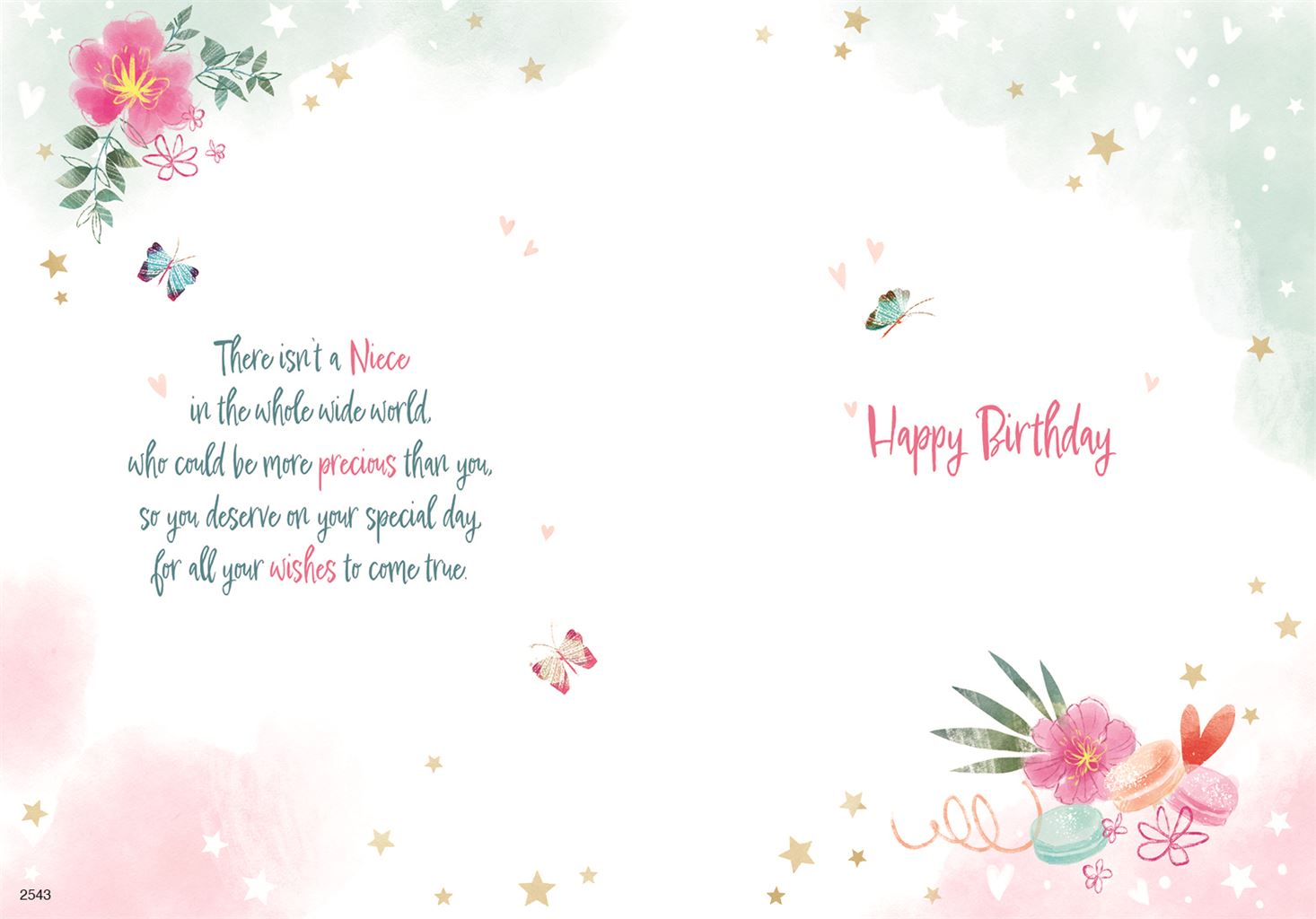 Verse: For a very special Niece on your Birthday There isn’t a Niece in the whole wide world, who could be more precious than you, so you deserve on your special day, for all your wishes to come true. Happy Birthday