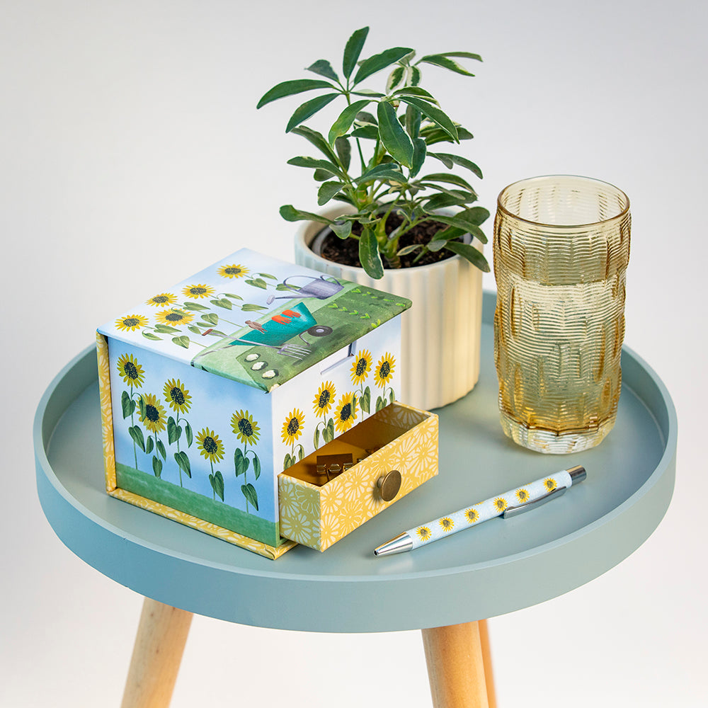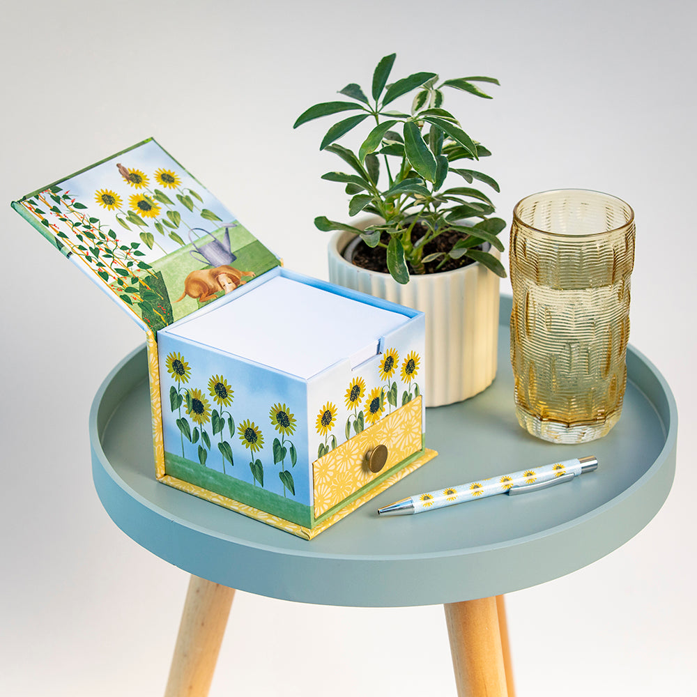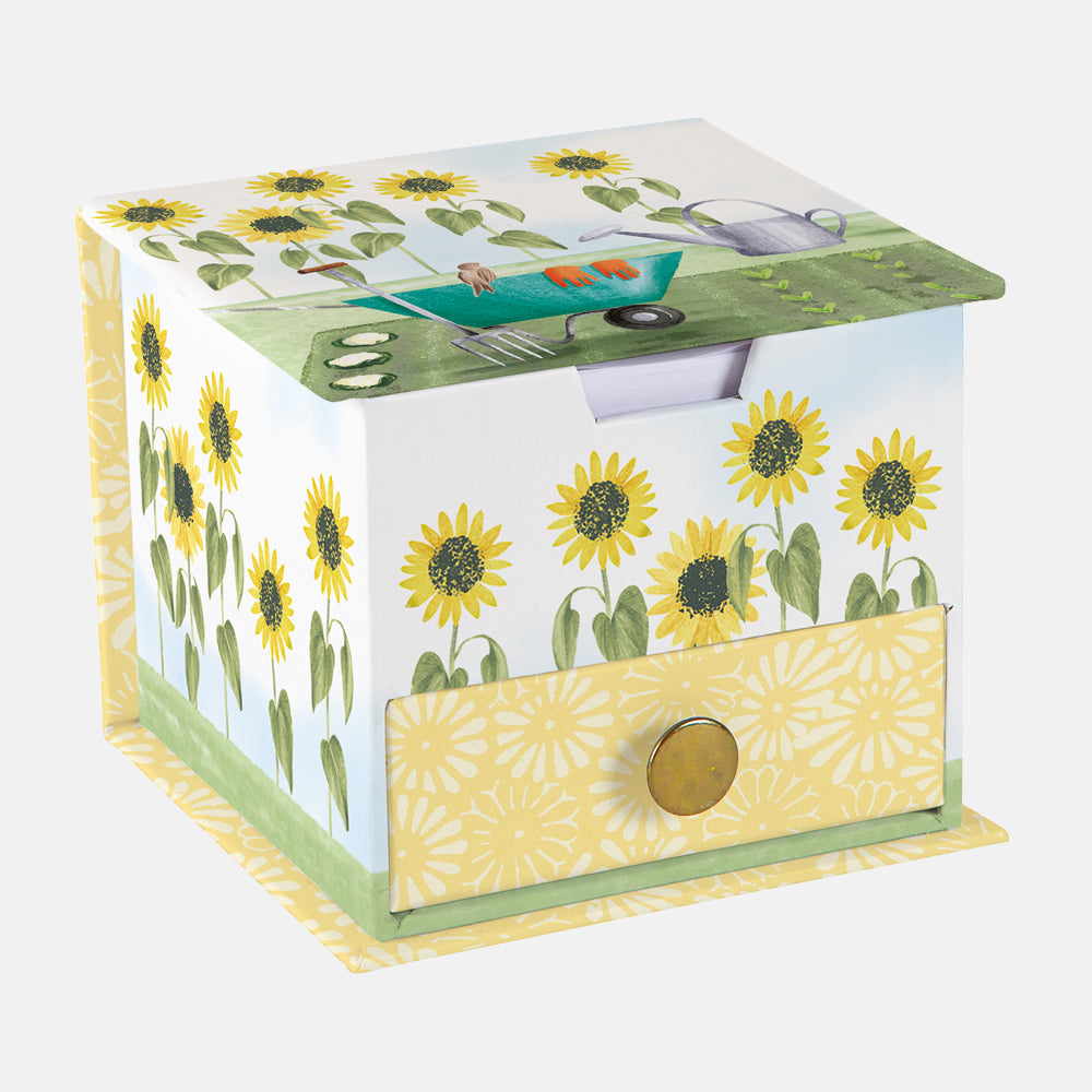 Enjoy an organised workspace with this practical and attractive desk accessory. Filled full of 400 sheets of plain paper, perfect for jotting down notes and featuring a small drawer perfect for keeping small pieces of stationery all in one safe place. Sheet size 100 x 100mm.
