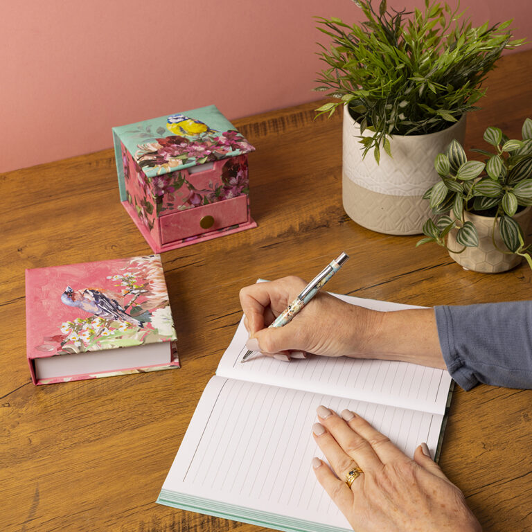 Give yourself a quiet moment with our beautifully designed notebooks perfect for writing, taking notes, journaling, making lists and much much more! Our flexi-bound notebook has 176 sheets of ruled white paper, colour printed on the side edges with an elastic closure.