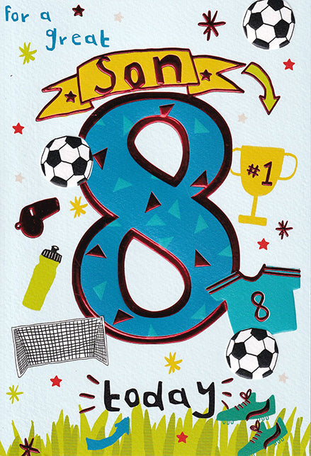 SON 8TH BIRTHDAY CARD - FOOTBALL