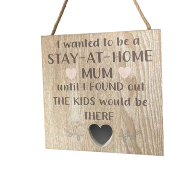 Add a touch of cheeky charm to your mum’s space with this wooden plaque featuring a heart-shaped cutout and the playful message: "I wanted to be a stay at home mum until I found out the kids would be there." Made with care, it’s the perfect fun and loving reminder of your special bond—sure to bring a smile every time she sees it!