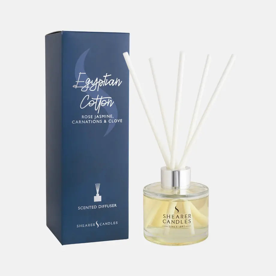 Fill your interiors with the beautiful fragrance of Egyptian Cotton. Enjoy a smooth silky, floral scent with notes of rose jasmine and carnations, armed with a touch of clove. This 100ml scented diffuser will fragrance your interiors for approximately 12-14 weeks.