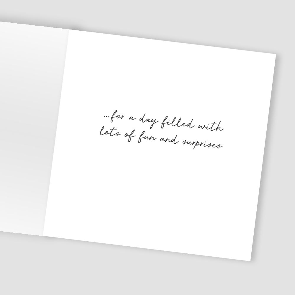 Message inside reads:… for a day filled with lots of fun and surprises