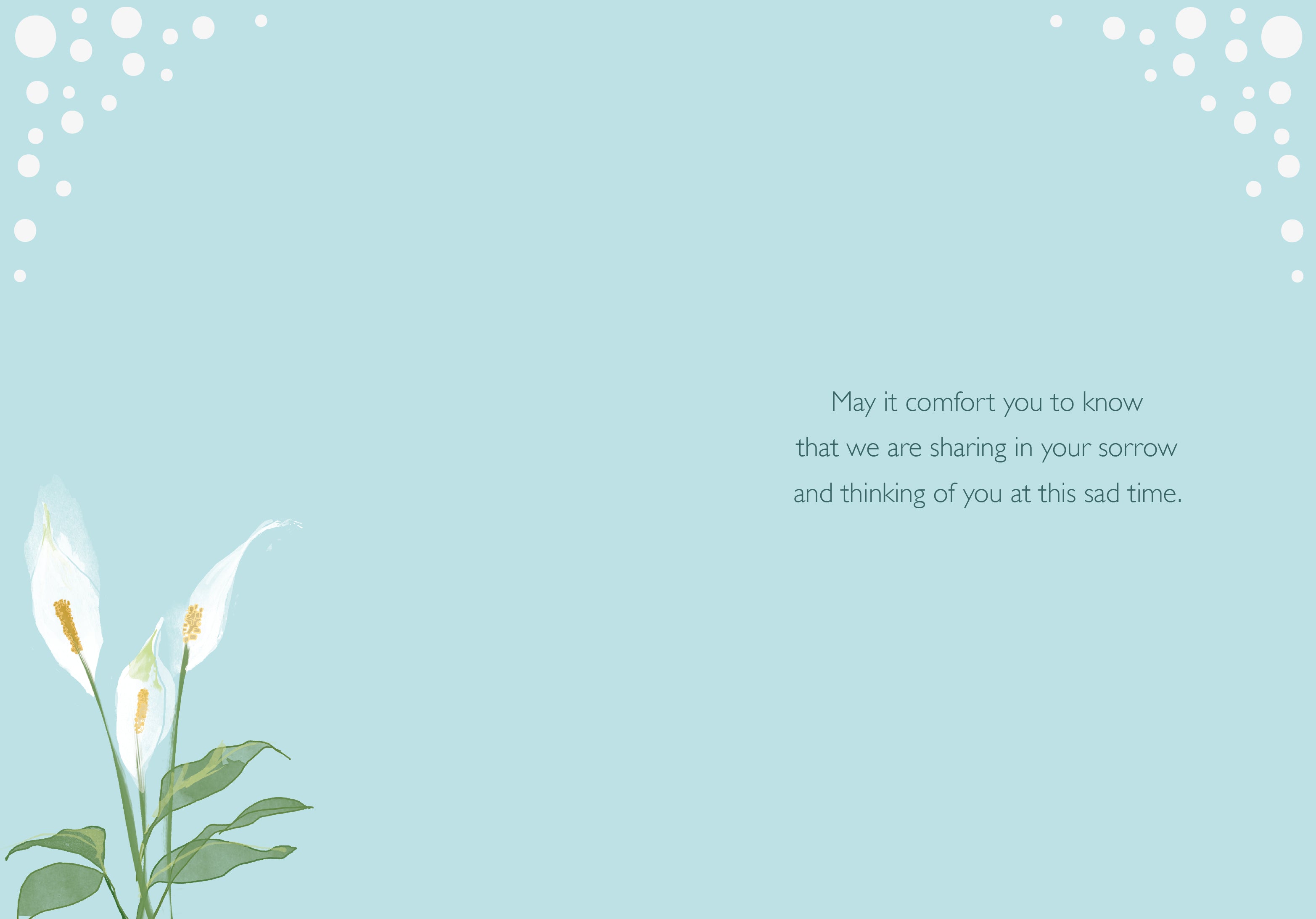 With sympathy on the loss of your partner May it comfort you to know that we are sharing in your sorrow and thinking of you at this sad time.