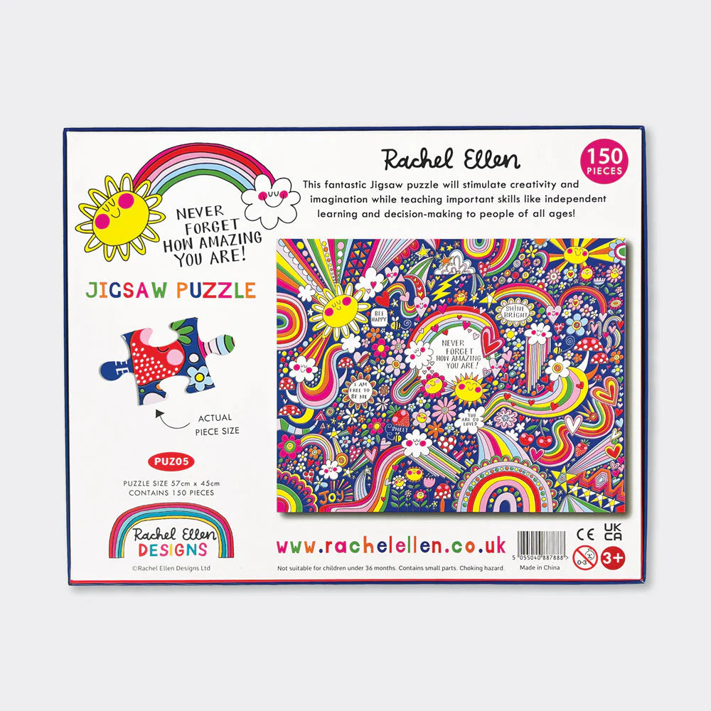 A vibrant, inspirational jigsaw puzzle in a fantastic positive design with the life affirming message, "Never forget how amazing you are!". Packaged in a sturdy box with a printed visual of the puzzle inside containing 150 pieces. A lovely present for a tween.