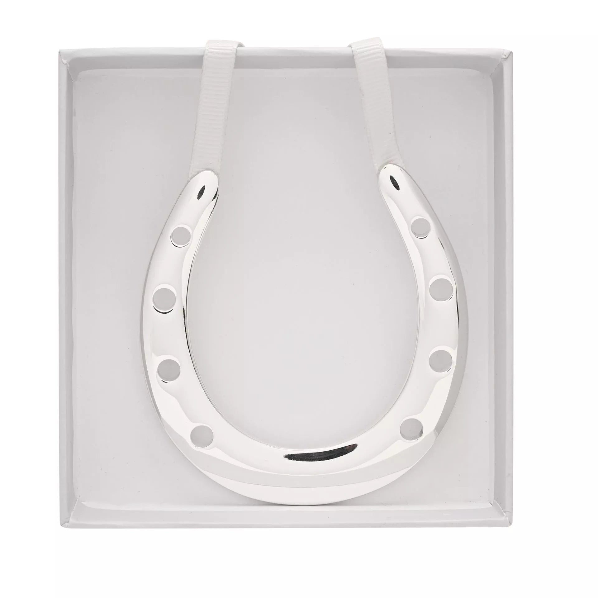 Give good luck with the Amore Silverplated Horse Shoe. The perfect wedding gift, this horseshoe-shaped ornament will be treasured. Crafted from silver-plated metal, it features the classic horseshoe design, a timeless symbol of good fortune. Whether on a shelf, wall, or mantelpiece, this ornament adds a special touch to any room.