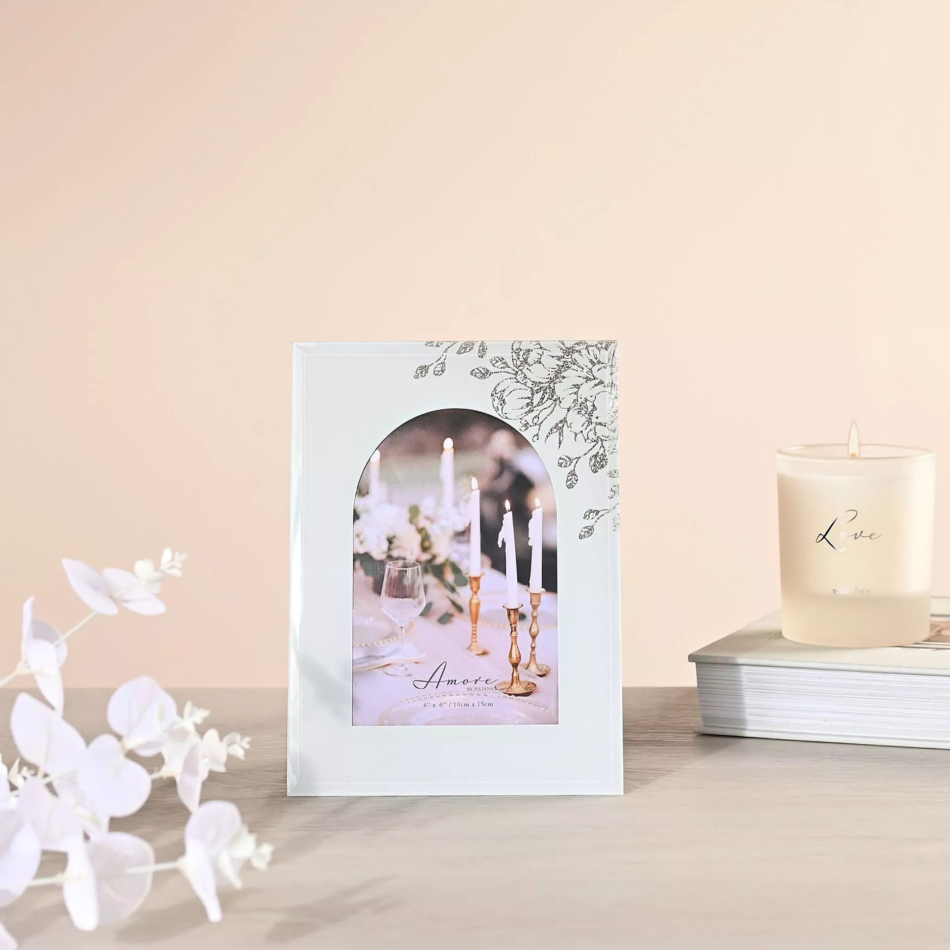 Amore White Floral Glass Arch Photo Frame 4" x 6"