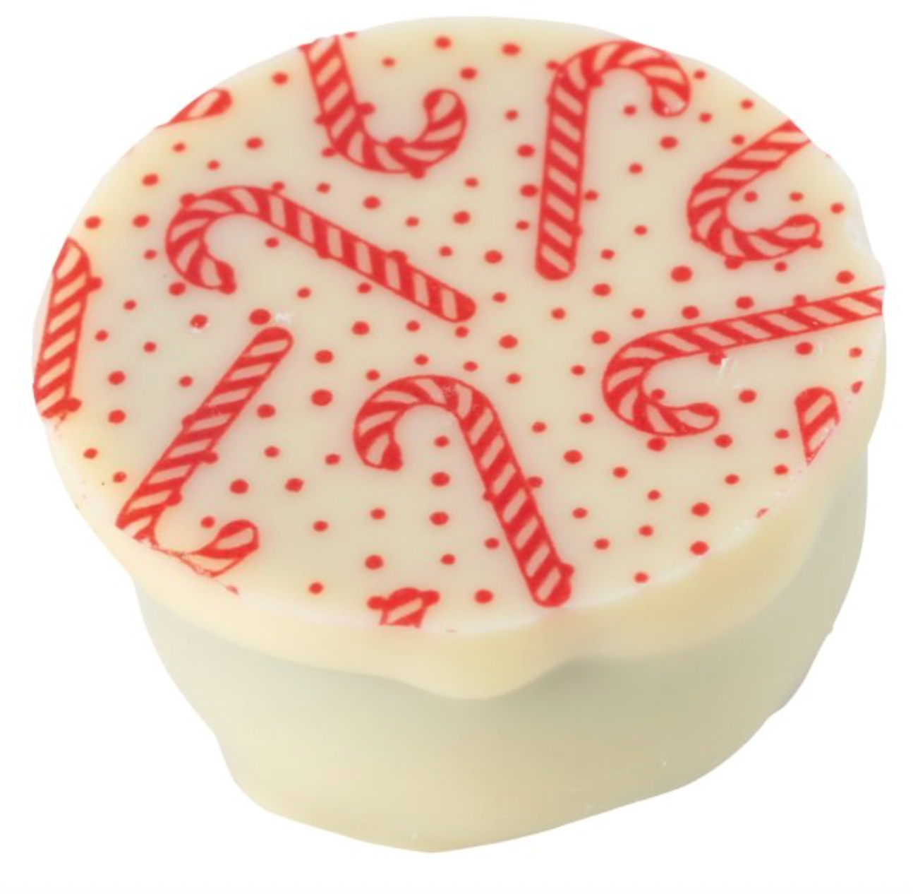 Sugar, White chocolate (Sugar, Cocoa butter, Whole MILK powder, Emulsifier (SOYA lecithin), Natural vanilla flavouring), Milk chocolate (Sugar, Cocoa butter, Whole MILK powder, Cocoa mass, Emulsifier (SOYA lecithin), Natural vanilla), Glucose syrup, Peppermint Oil 0.1%, Print decoration (Sugar, Cocoa butter, Vegeteble fat, Skimmed MILK powder, Colouring (E101), Anhydrous MILK fat, Colouring (E120), Emulsifier (E322 (Sunflower)), Natural vanilla flavouring)