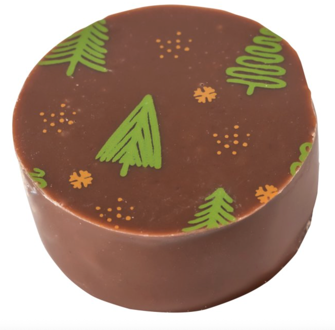 Milk chocolate (Sugar, Cocoa butter, Whole MILK powder, Cocoa mass, Emulsifier (SOYA lecithin), Natural vanilla), Caramel 47% (Glucose syrup (SULPHITES), Palm fat, Sweetened condensed MILK, Rapeseed oil, Water, Salt, Natural flavouring, Emulsifier (SOYA lecithin), Colouring (Curcumin, Annatto bixin)), Glucose syrup, Holly Décor (Sugar, Glucose syrup, Non hydrogenated palm oil, Invert sugar, Water, Emulsifiers (E414, E471), Humectant (E422), Stabiliser (E415), Spirulina powder, Colourings (E100, E153, E160a, E162))