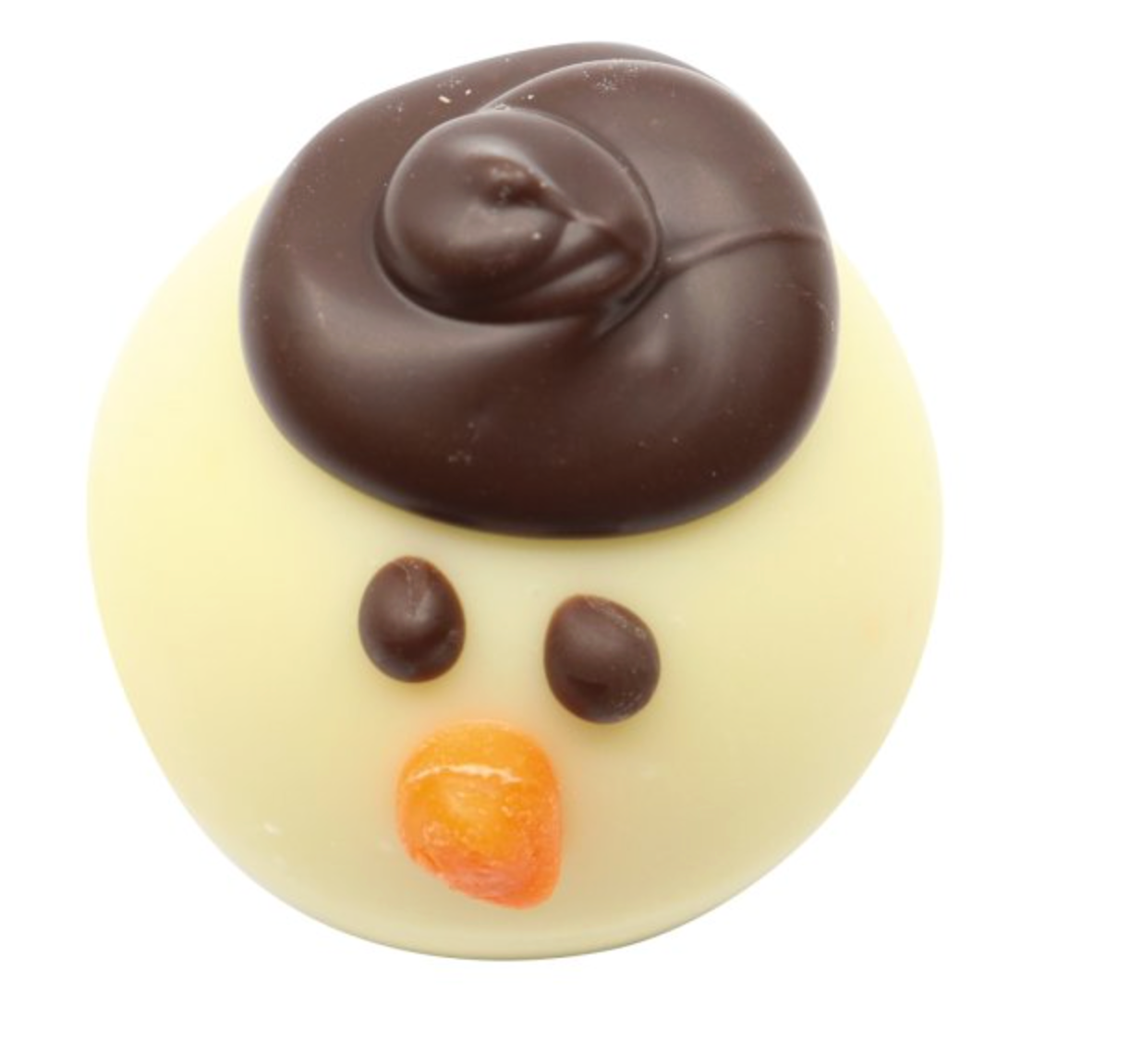 White chocolate decorated snowman with hazelnut filling