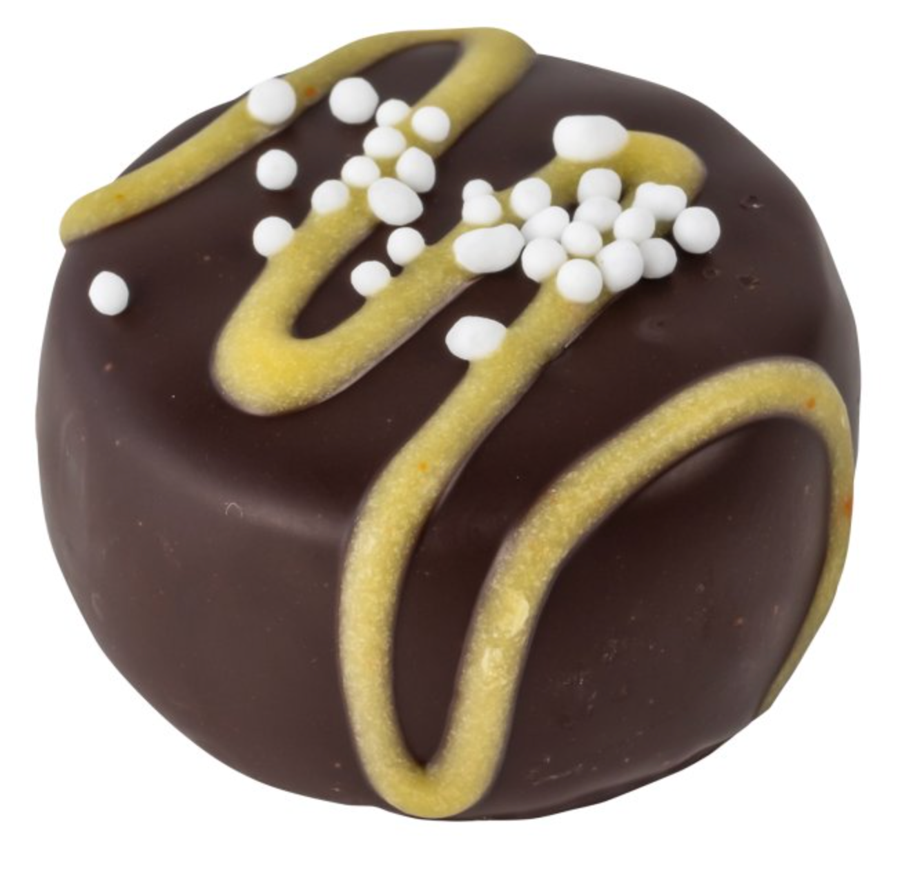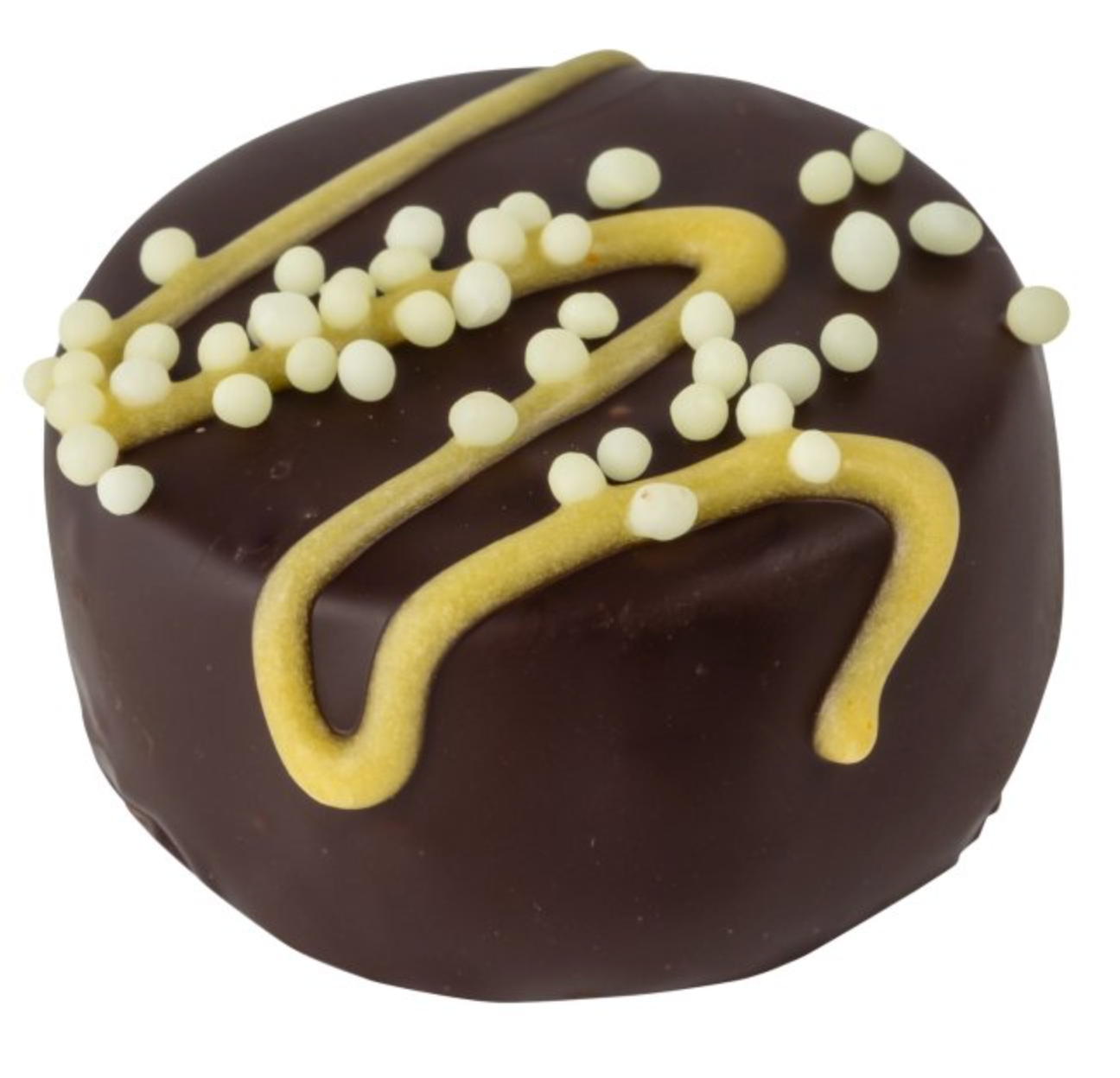 Lemon Fondant Cream - in dark chocolate with stripes & sprinkles