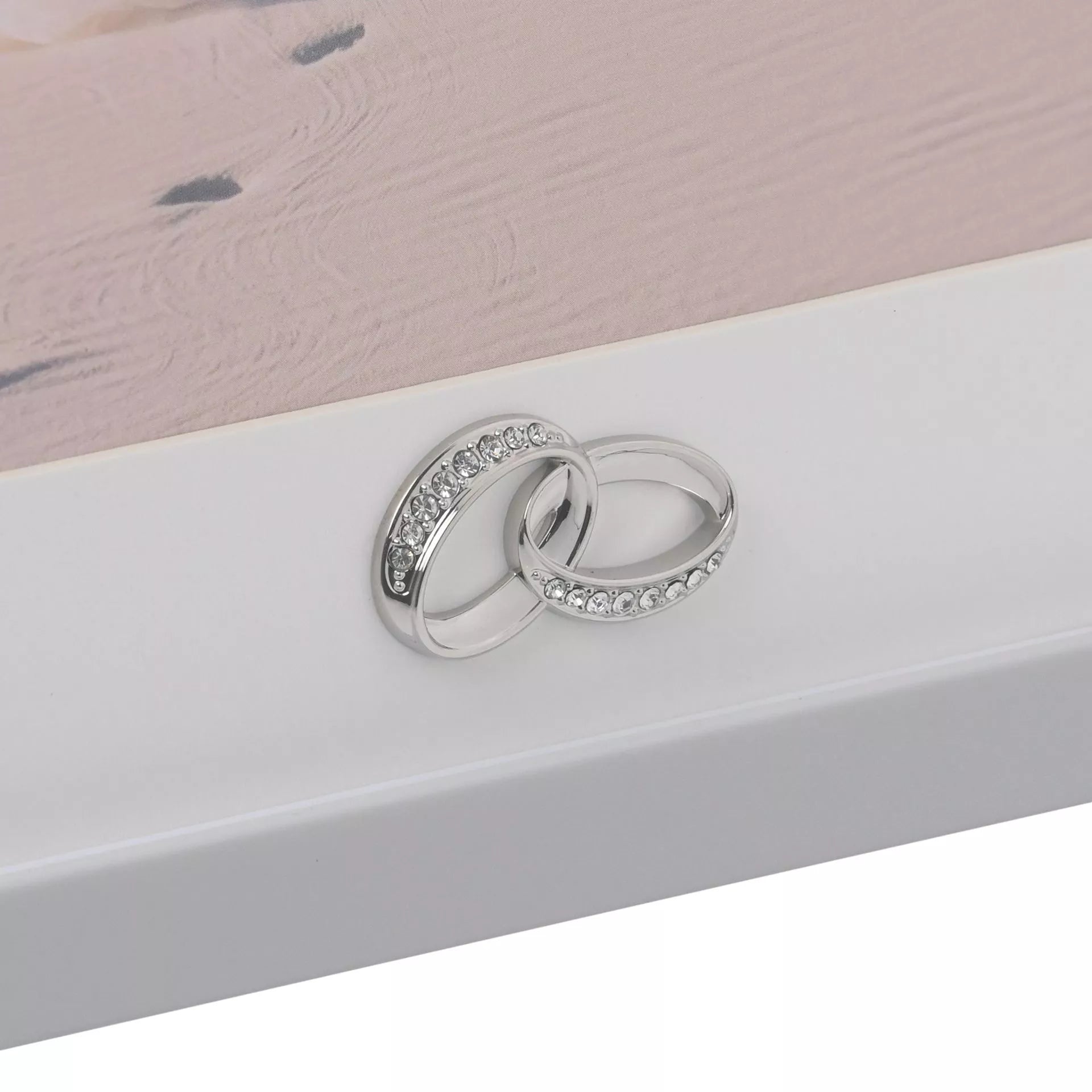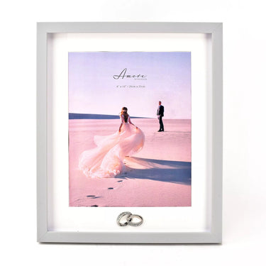 Help the newlywed couple proudly display a precious moment from their big day with this elegant landscape photo frame.
