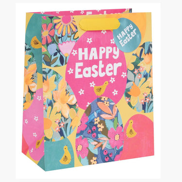 Fantastic large Gift Bag featuring floral Easter Eggs from the Paper Salad range. Finished with matching tag. Recyclable when yellow ribbon handles are removed.