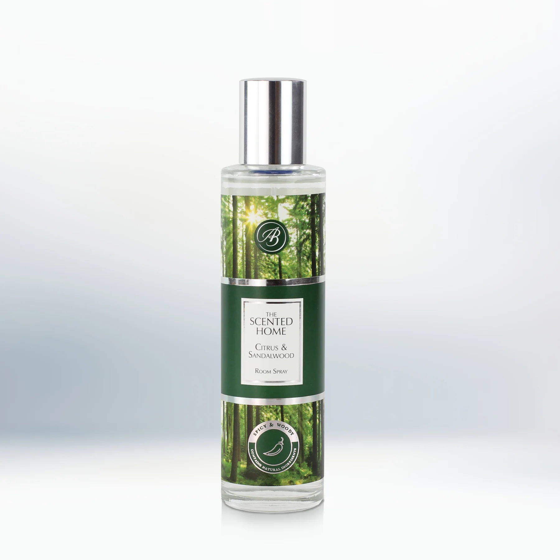Citrus & Sandalwood Room Spray features deep, invigorating base notes of mahogany and white cedarwood, accented by a warm core of spicy nutmeg and cinnamon and finished with a zingy bergamot top note.