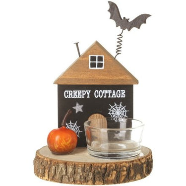 Get into the Halloween mood with this spooky house featuring a rustic finish in shades of black and orange complete with bats flying around giving it an eerie and haunted feel.