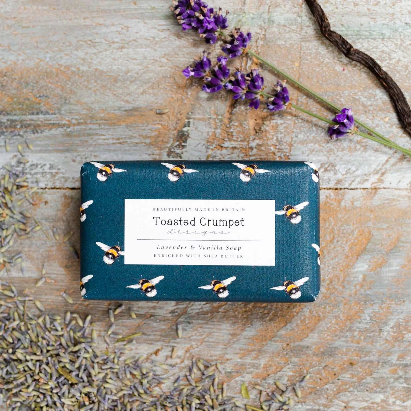 Luxury large 190g soap bar, proudly made in Britain. Enriched with Shea butter. Each 100% triple milled soap bar is made with traditional methods using pure vegetable oil and is presented in a beautifully designed fully recyclable wrap. Vegan friendly and not tested on animals. Paraben and SLS free.