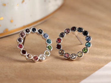 SILVER PLATED CIRCLE STUD EARRINGS WITH MULTICOLOURED CRYSTAL INSET